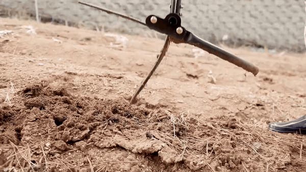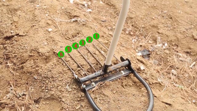1, 5本の爪で硬く締まった土を楽に腰を伸ばして掘り起こす