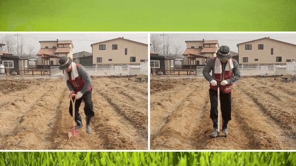 そして、土起こしフォークはロータリーシャベルと立ち姿勢で作業を行うのは同じですが土起こし方をみると、掘り起こされた塊状をもう一度砕かなければならないほど荒いです。反面、ロータリーシャベルは土起こしフォークができない砕き作業をしてくれるのでその作業の能率を比較すれば、このような比率が成立します。
