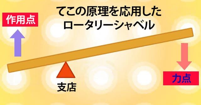 力を入れなくて楽しく土起こしができるように応用されたのがてこの原理で開発されたのが大きな特徴と言えます。小学生の時に勉強したてこの原理で力点と作用点を応用して畑で苦労せずできるだけ楽しく作業ができるように作られたのがロータリーシャベルです。