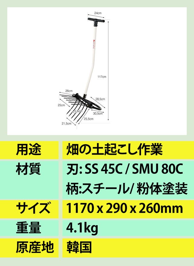 上からでも説明したとおり、畑の土起こしは植物に対して成長するのに一番大事な作業過程です。この作業過程で一番使われているのがスコップで、その代わりに腰に伝えられる負担率は土起こしフォークとロータリーシャベルより大きいです。