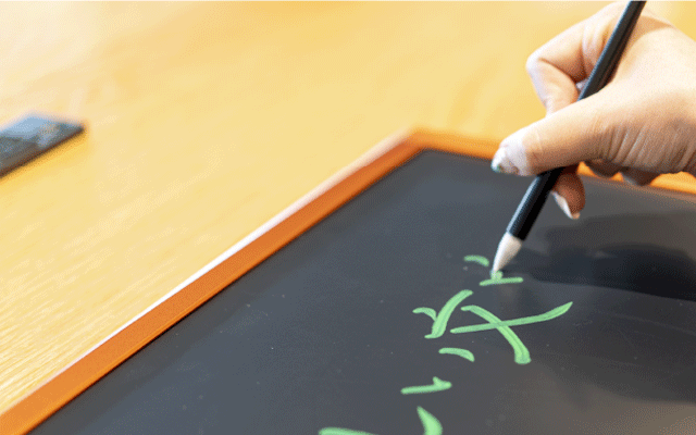 毛筆のように滑らかにハネ、ハラいを表現できます従来の磁気ボードより鮮明な文字が書けます。磁力でなく圧力に反応するのでペンでなく指先でも書くことが可能です。