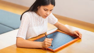 A5.先が固いものなら書くことは可能ですが、毛筆のような滑らかな書き味を出すには専用ペンが必要です。専用ペンは本体右上に差し込まれています。