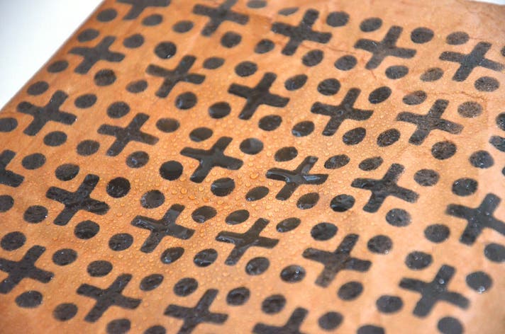 柿渋を塗ったクラフト紙は、陽に焼け、手になじみ、少しずつ深みを帯びていきます。