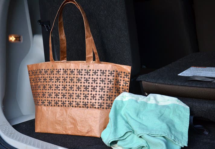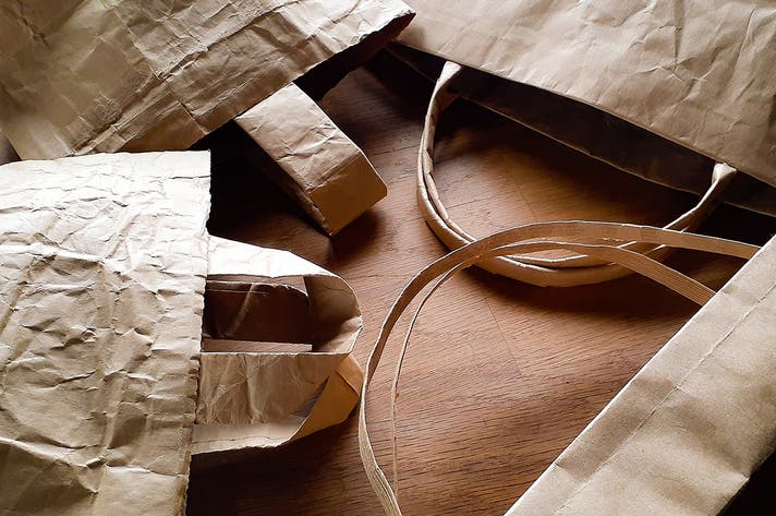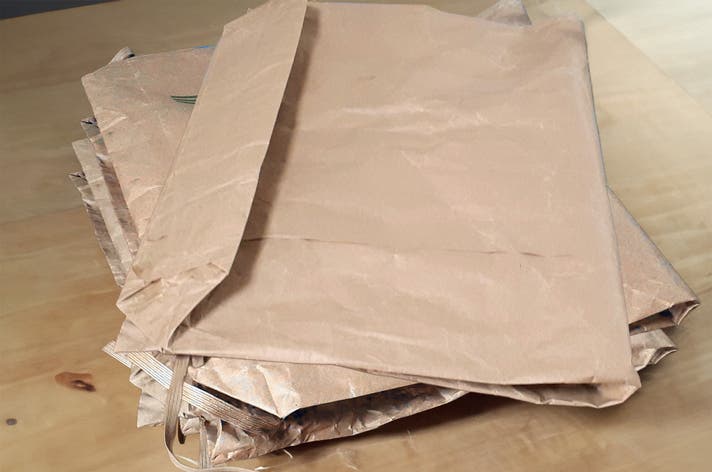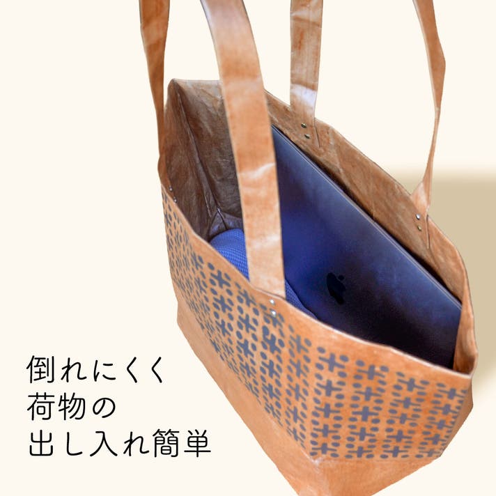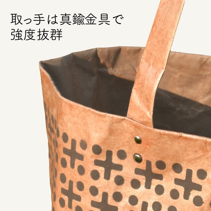 米袋を重ね合わせ、6層(持ち手は9層)のクラフト紙でできていて強度抜群。