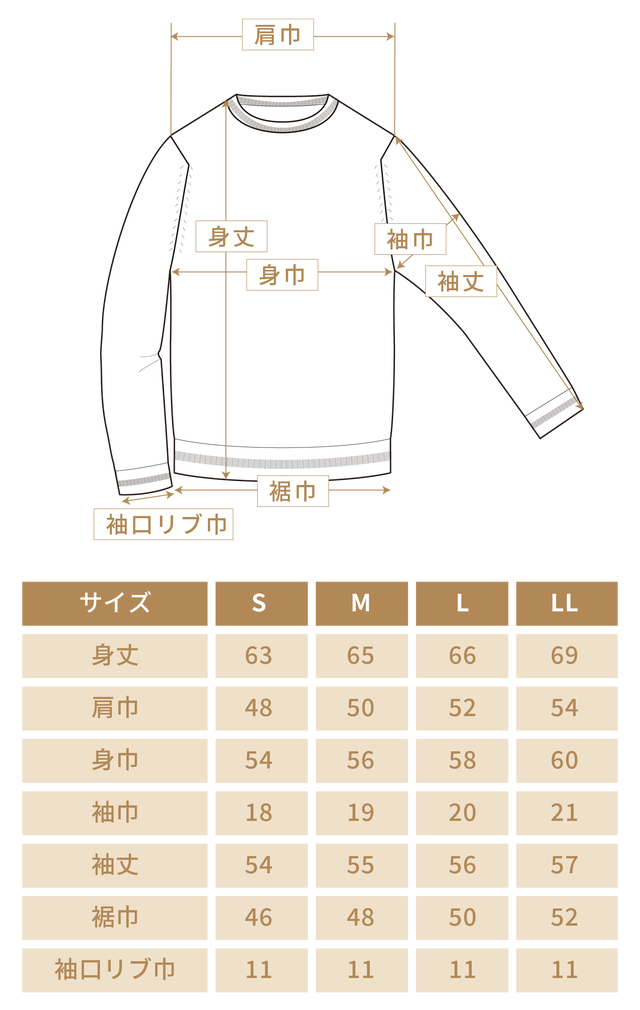 肩を少し落としめにし、クルーネック、全体的にゆとりを持たせデザインとなっております。
