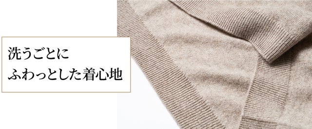 洗濯を繰り返す度に徐々にカシミヤの軽いふわっと感をお感じいただけるようになります。