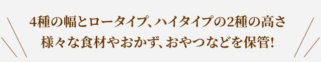 350mlの小容量の10cmロータイプから、2000mlの16cmハイタイプまで幅広く対応でき、様々な食材やおかず、おやつなどが保管できます。