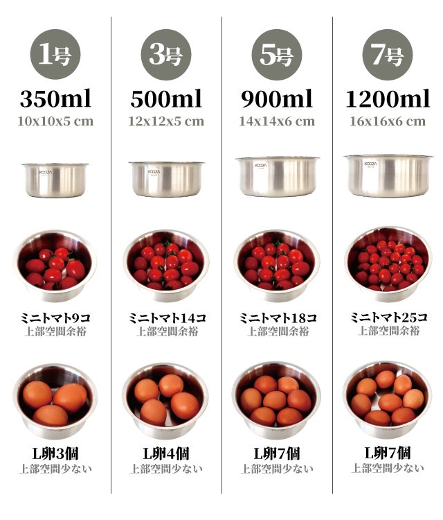 横幅が同じタイプ:(蓋のサイズは4種類):[1号、2号] / [3号、4号] / [5号、6号] / [7号、8号]