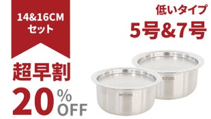 - 350~2,000mlまでの容量、様々なサイズ、熱源に対応でき、キッチンやキャンプでも大活躍!