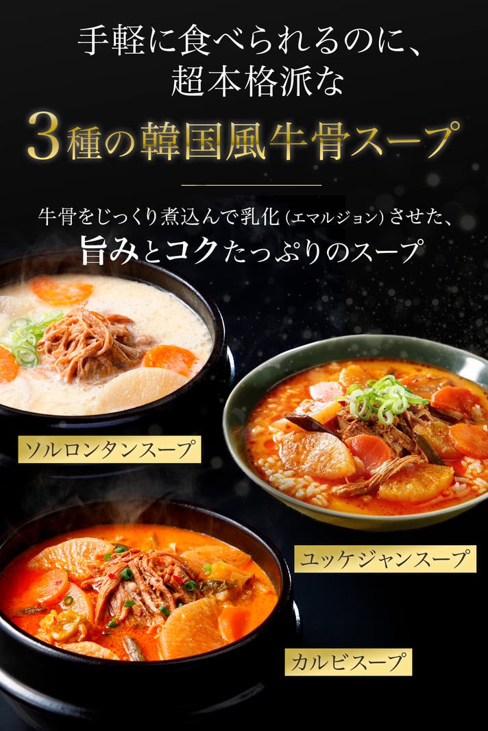 「肉のプロ」がこだわり抜いた、本格的な韓国風牛骨スープ3種を2セットでお届け!