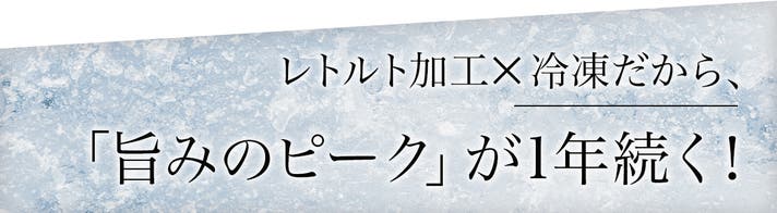 - 旨みのピークを“まる一年”維持。レトルト×冷凍だから実現できた、美味しさ・保存性。
