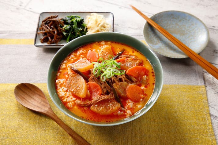 辛さの中にも野菜の甘みと牛骨・牛肉の旨味が感じられる食べ応えのあるスープに仕上がりました。