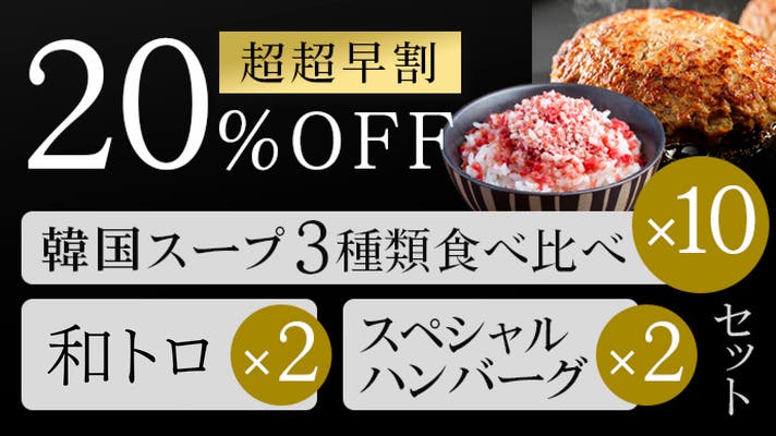 【超超早割20%OFF】韓国スープ3種類食べ比べ×10+和トロ×2+スペシャルハンバーグ×2