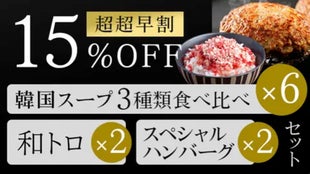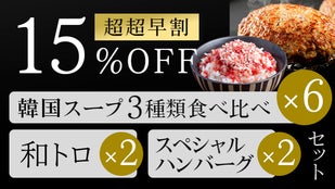 【超超早割15%OFF】韓国スープ3種類食べ比べ×6+和トロ×2+スペシャルハンバーグ×2