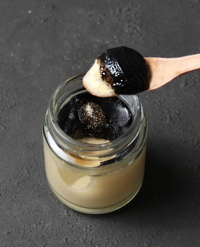 黒ごま・・ 黒ごまのペーストソースと北海道の黒大豆を使用