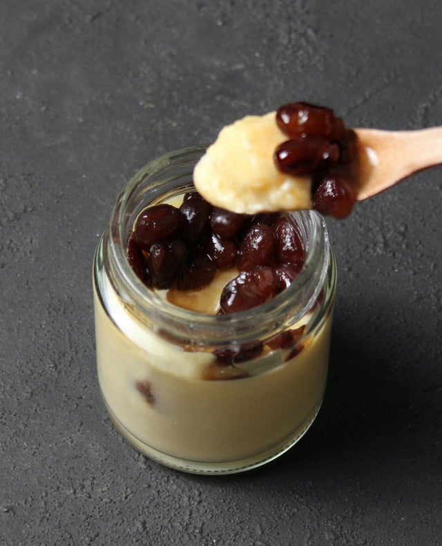 小豆 ・・柔らかく炊いた粒状の北海道産の小豆を使用