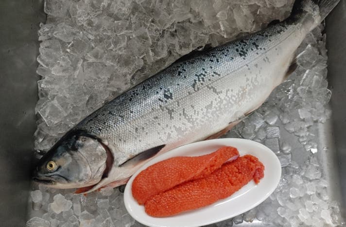 水揚げされた秋鮭をすぐに加工し、鮮度を落とさず生筋子を取り出します。