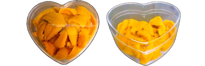 - 身崩れしやすい生ウニを、ミョウバンを使わず可愛いハート型容器に!