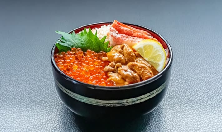 ウニ、タラバガニ、いくらをご飯にのせて贅沢な3色丼もオススメです!