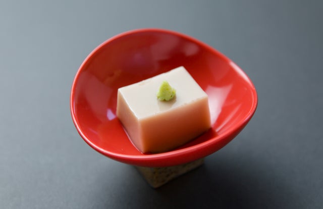 昔から大変高価で貴重だった吉野本葛と練りごまを水で溶き、熱をかけてじっくりと練り上げ冷やし固めたもの。禅寺では修行僧が日々食す料理ではなく賓客をもてなすための特別な高級料理。