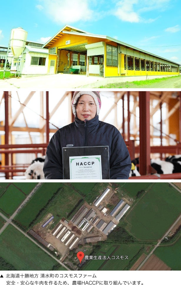北海道十勝・清水町のコスモスファームで一頭いっとう、大切に育てた良質な国産牛。