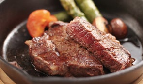 赤身肉はもちろん、脂にもうまみを感じられる大判のステーキ
