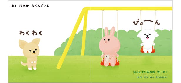 公園に来たうさぎのリンちゃん。みんなと遊びたいけれど勇気が出なくて…。公園のブランコがストーリーの舞台。