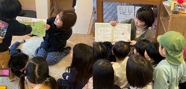 楽しみながら積極的に発言してくれる子が多く絵本時間内の対話が増えました!指を指しながら答えたり、質問返しをしてくれたり、笑顔と笑い声がたくさん広がりました。