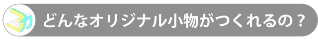 ひらがな、アルファベット、数字から2つの文字を選ぶことで、あなただけのオリジナル小物ができあがります。