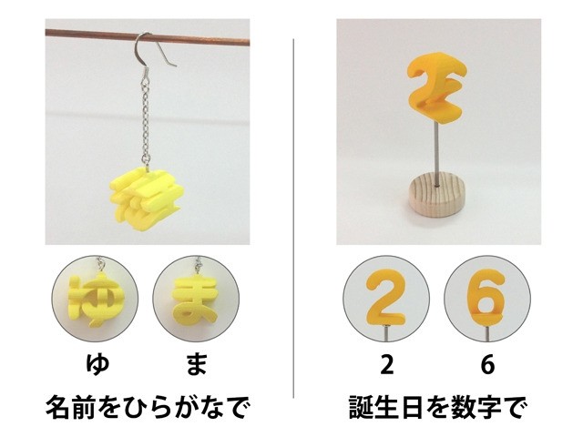 自分の名前や誕生日でできた自分だけの3D小物は、机に置いていつも側で眺めることができます。