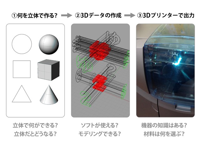 ただ、3Dプリンターを何のために使うのか、どんな立体を作るのか、を考えるためには、従来の2Dプリンターよりも柔軟な発想が必要になります。