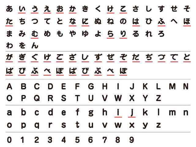 ひらがなは46文字、アルファベットは大文字、小文字が各36文字、数字は10文字。