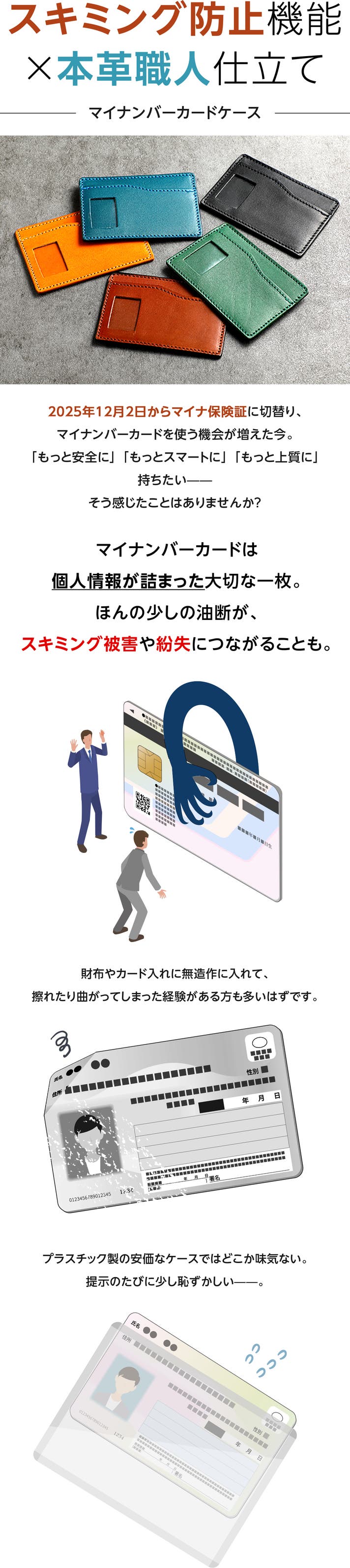 「Makuake(マクアケ)」は、実行者の想いを応援購入によって実現するアタラシイものやサービスのプラットフォームです。このページは、 ファッションカテゴリの 「スキミング防止機能×本革職人仕立てのマイナンバーカードケース【マイナ保険証対応】」プロジェクト詳細ページです。