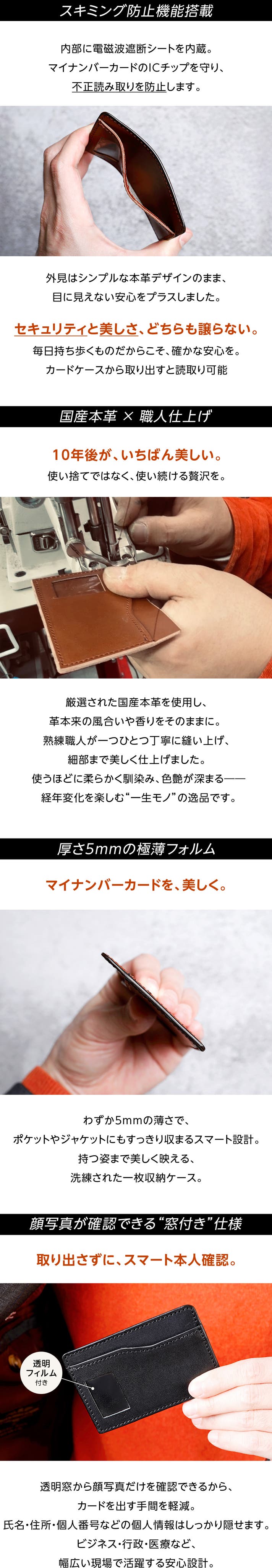 - 使うほど艶を増す“一生モノ”の本革製マイナンバーカードケース。