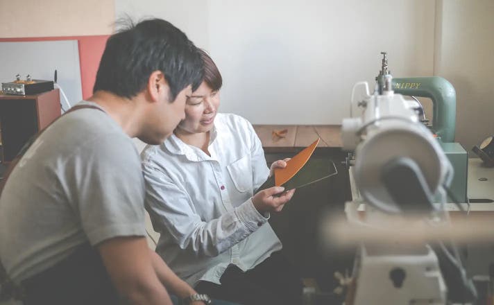 「革のある暮らし®」では、夫婦ふたりで革の裁断から縫製、検品、発送まで責任を持って行っています。