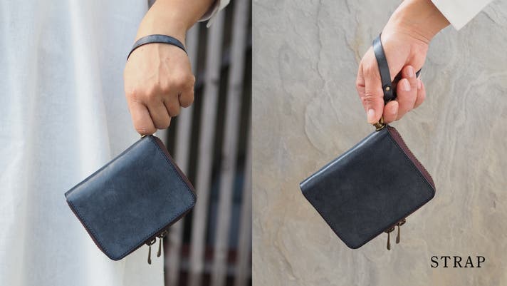 お好きなウォレットチェーンを付けていただくも良し、別オプションの革ストラップを付けてお使いいただくこともできます。