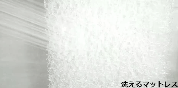 マットレスの中材は水分を吸収しない素材で乾きやすく、ご家庭でも簡単に水洗いすることが可能なので、臭いや汗を洗い流すことができます。