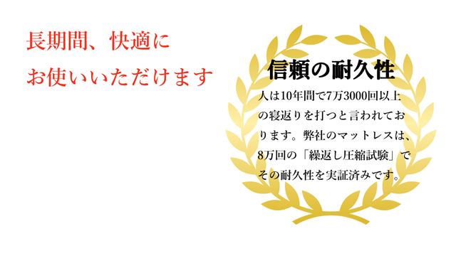 さらに、弊社の高反発マットレスの耐久性は実証済み。