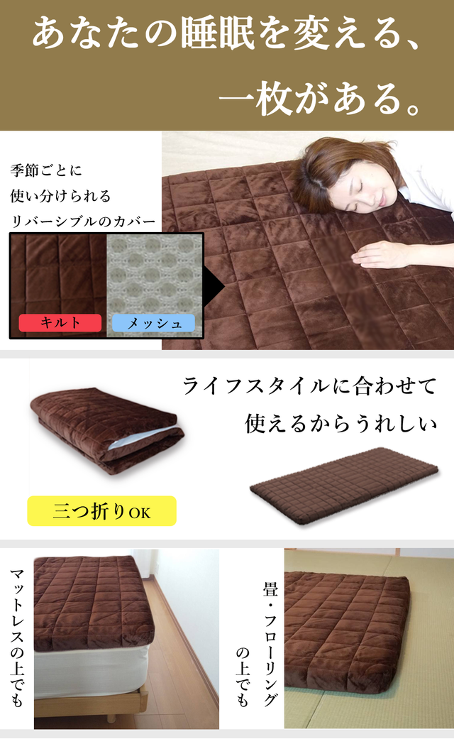 これ1枚で敷布団でも、今お使いのマットレスのグレードアップにも。