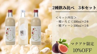 【マクアケ限定10%割引】甘酒飲み比べ 糀・いちじく 2本 糀・プレーン 1本
