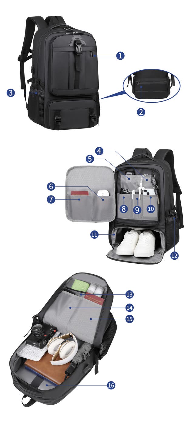 - 16個ポケット付き!驚きの収納力と洗練されたデザインで、様々なシーンで活躍できる!