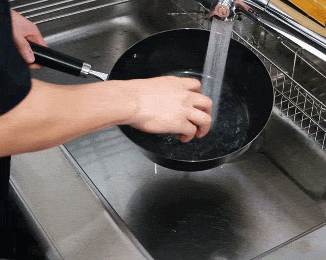 ・焦げ付いた場合は、フライパンに水を入れて煮立たせ、焦げをふやかしてください。焦げが浮いてきたら、たわしなどで落としてください。