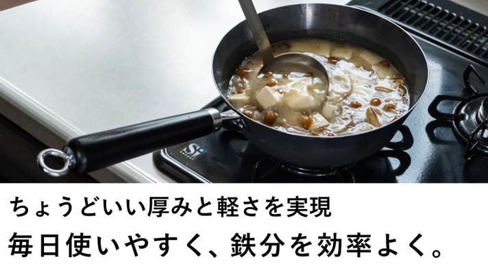 - 熱がしっかりまわる厚みと、程よい軽さを実現。末永く使え、鉄分も効率的に摂れる。