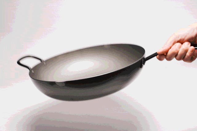 なだらかなカーブは食材をしっかり受け止め、炒め物に便利な設計。熱が隅まで回りやすい形です。