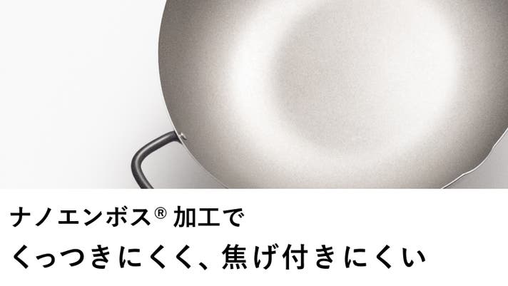 ナノエンボス加工を施したフライパンは、タフな鉄製なのに、驚きの軽さ。油馴染みが良くてくっつきにくく、シーズニング不要という、これまでの鉄フライパンのイメージを覆します。