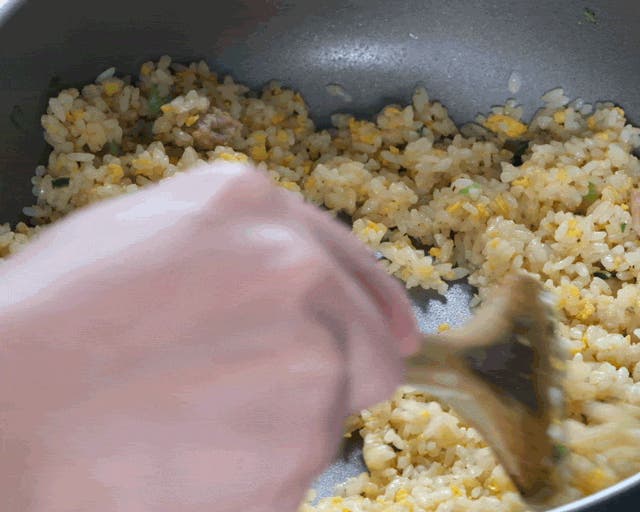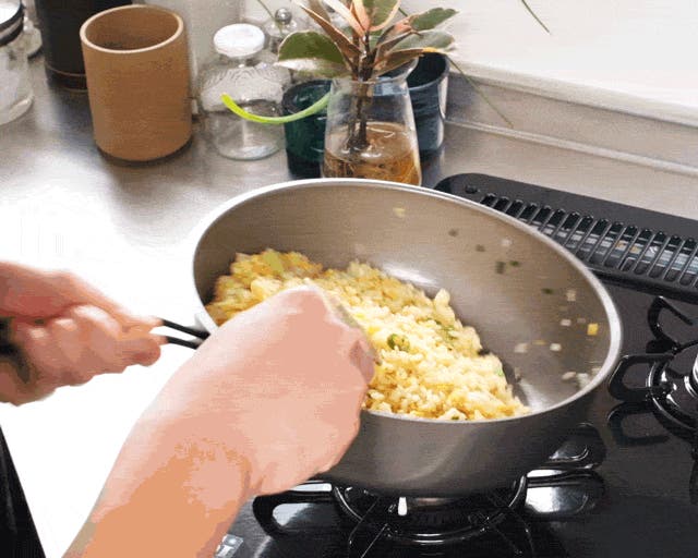 チャーハンのような炒め物も、片手で楽に振ることができます。