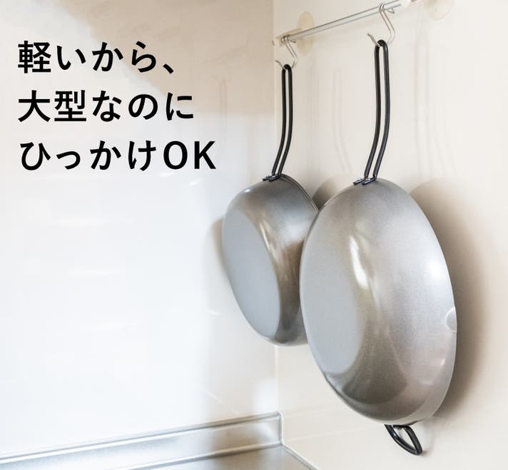 軽量だから、吸盤や磁石式のフックにかけることができ、スペースをとりません。