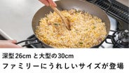 今回は深型26cmと30cmという大ぶりなサイズであるにもかかわらず、片手で扱いやすい重さを実現。
