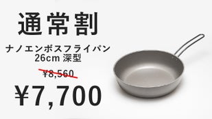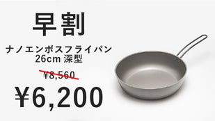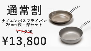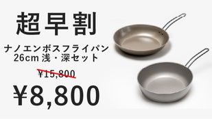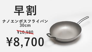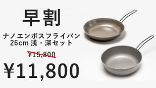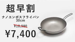 シリーズ累計約4500万円の応援購入を頂いた「ナノエンボスフライパン」に、焼きから煮込みまで便利な26cmと、ファミリーにも嬉しい大型の30cmが登場!
