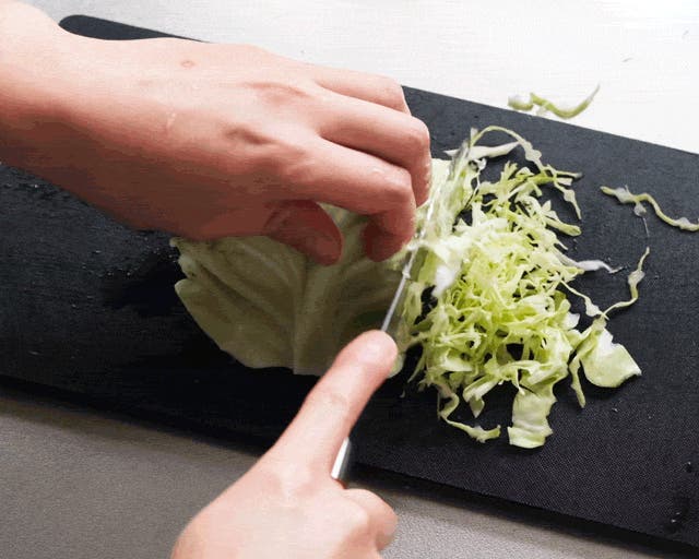 限られたスペースのキッチンでも取り回しが良く、小さなまな板の上でもストレスフリー。それでいて、キャベツの千切りのような大きな仕事も。これ一本で一人暮らしからファミリーまで使いやすい、考え抜かれたサイズです。